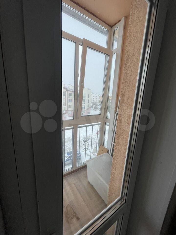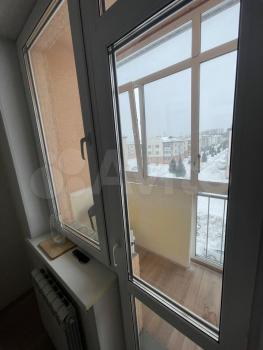 Балкон застеклён. Вид из окна в строну города .
