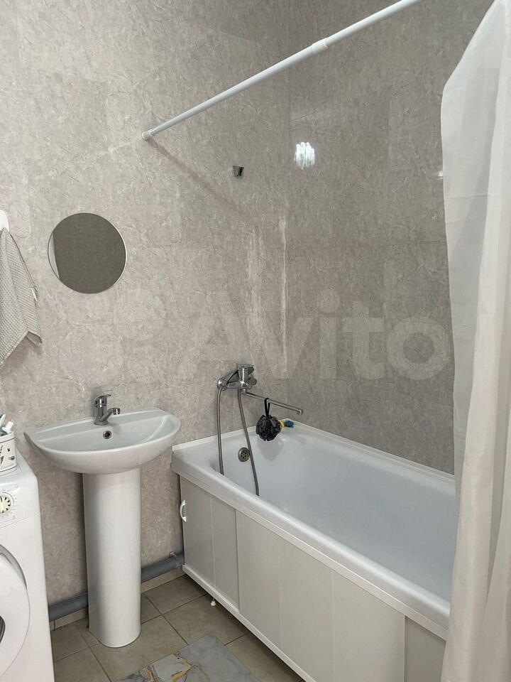 Ванная комната совмещенная, выполнена в светлых тонах, оборудована стиральной машиной. В квартире косметический ремонт, что создает приятную атмосферу. Из мебели имеются спальные места.