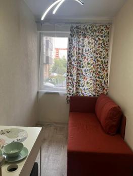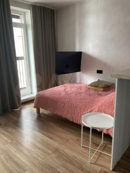 В квартире сделан косметический ремонт, что создаёт атмосферу уюта и комфорта. Студия полностью меблирована, есть всё необходимое для проживания: холодильник, микроволновка, чайник, электроплитка, стиральная машина. Лоджия остеклена.