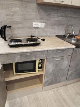 В квартире сделан косметический ремонт. Есть всё необходимое для комфортного проживания: мебель на кухне и в комнате, два холодильника, микроволновка и стиральная машина.