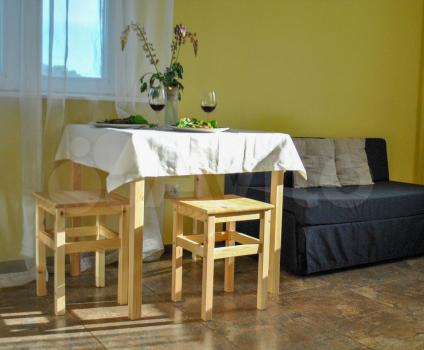 Для комфортного сна имеется двухспальная кровать аskоnа, с ортопедическим матрасом аskоnа. Небольшой, но удобный раскладывающийся диван (+1 спальное место).