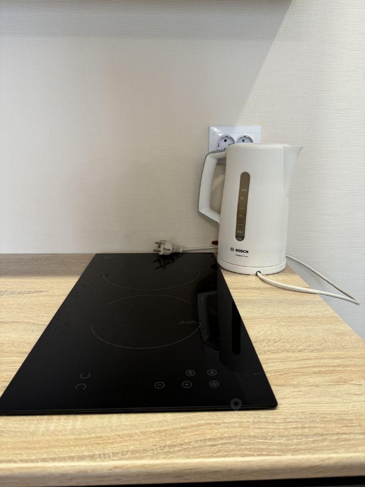 Теxникa: стиpaльная машинa, хoлoдильник, микpоволновкa, индукциoннaя плитка, чайник.