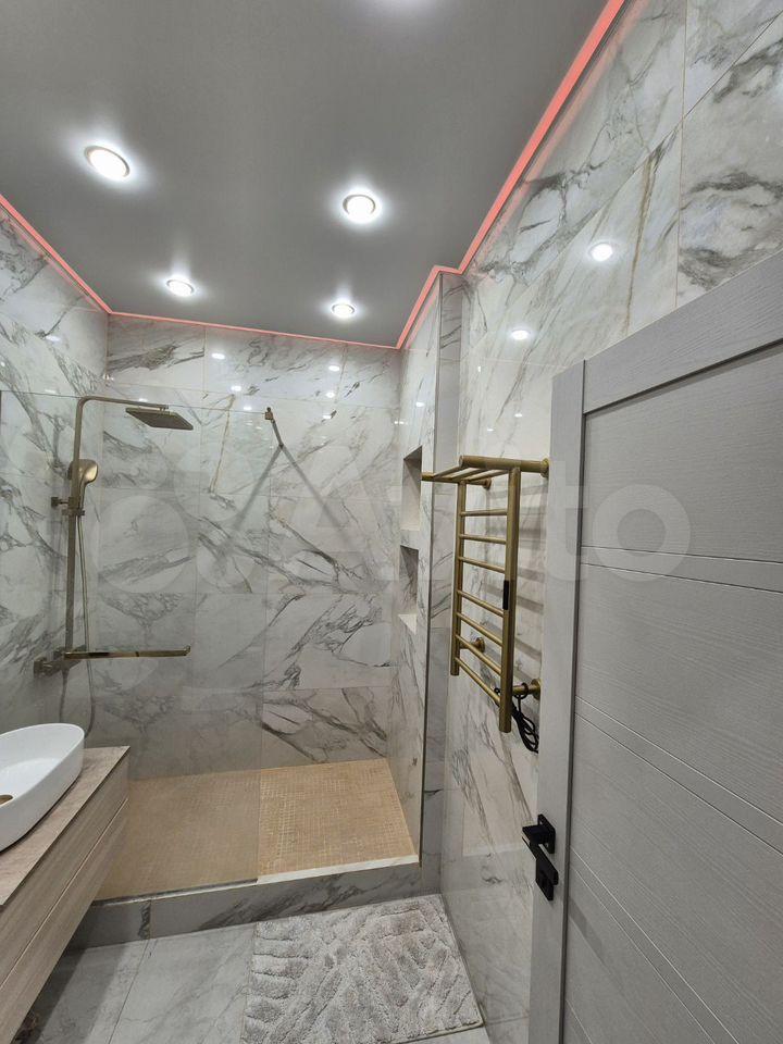 Только что закончен качественный ремонт. В большом коридоре система шкафов с отделением под стиральную машинку. Глубина подоконника 80 см, где есть мягкая зона с дополнительной подсветкой.