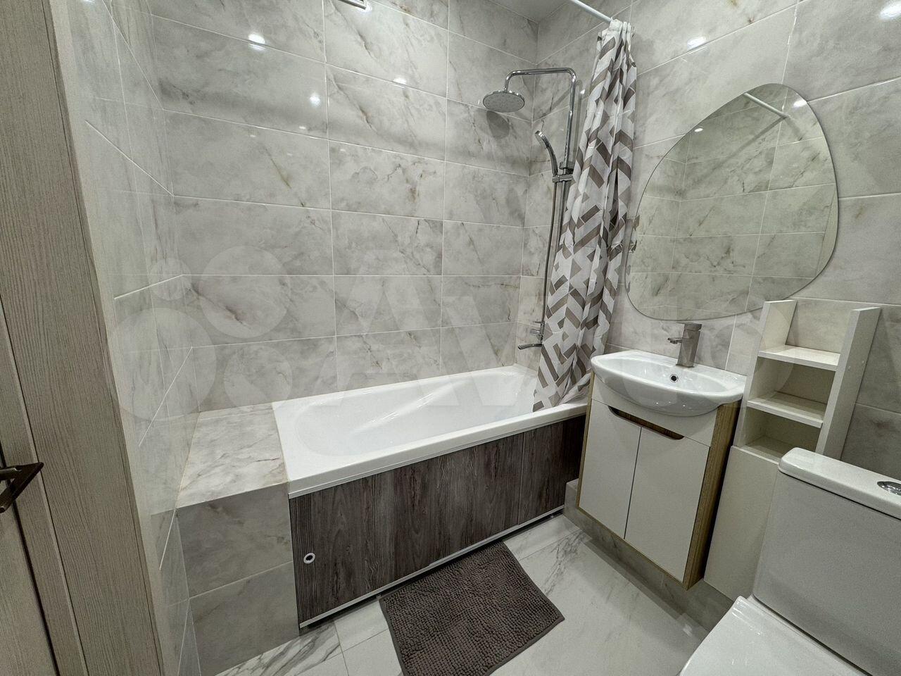 В квaртире (в прихожей) стоит высокий шкаф для одежды (на фото нет, т.к. недавно купили) и новая стиральная машина! Также недавно повесили шторку в ванной и электрическую вытяжку для минимизации влажности.