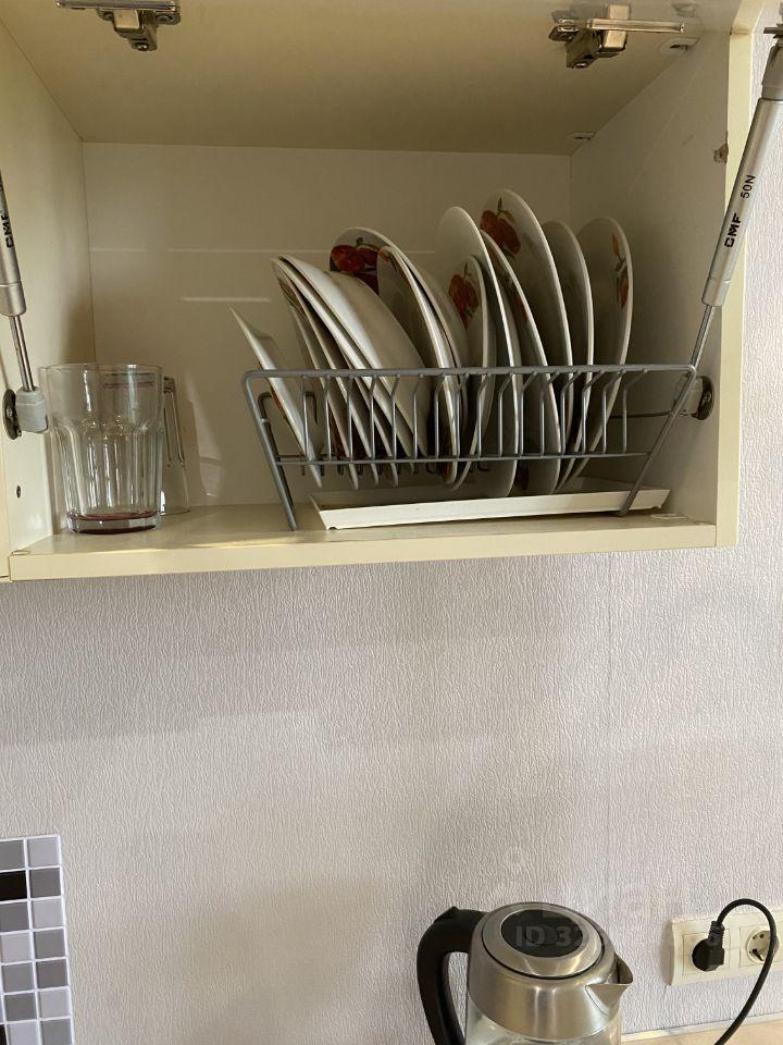 Квартира после косметического ремонта и генеральной уборки, чистки мебели, замены кранов, смесителя, поэтому квартира выглядит свежо и современно. В студии есть всё необходимое для комфортного проживания: мебель, а также техника — холодильник и стиральная машина, вытяжка, чайник, микроволновка. Есть вся необходимая посуда, столовые приборы.
