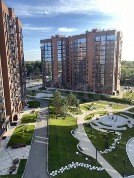 В квартире выполнен ремонт по индивидуальному дизайн-проекту с новой мебелью и техникой. Из панорамных окон и лоджии открывается вид на вековые сосны, ландшафтное озеленение двора с озером.