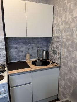 В квартире новый диван, новый кухонный гарнитур, новый чайник
