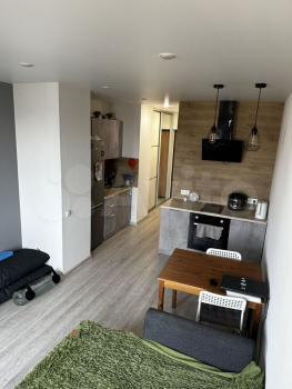 Уютная, теплая студия, общая площадь 26 м². Полностью укомплектована: есть вся необходимая мебель и техника. Рассмотрю ответственных жильцов.
