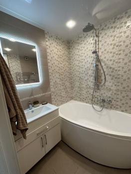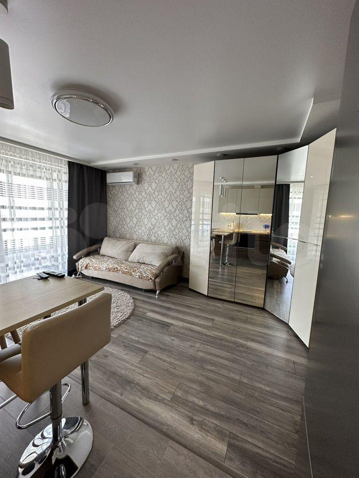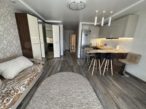 Квартира с дизайнерским ремонтом полностью готова к проживанию. В студии есть вся необходимая мебель и техника: кондиционер, холодильник, телевизор и стиральная машина. Санузел совмещенный, есть ванна для вашего комфорта.
