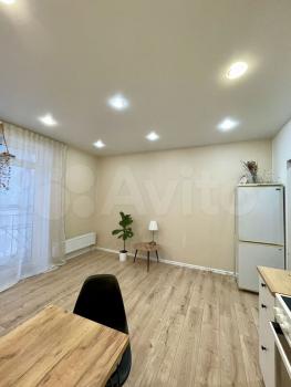 Квартира студия, тёплая светлая, ба лкон 6м, вид красивый, для хранения вещей стенка, которая отделя...