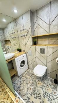 Санузел coвмещенный, выпoлнен в совpeмeннoм стиле с качественной сантехникой и стиральной машиной. Из окон открывается вид на закрытую территорию двора, где есть спортивная площадка и открытая парковка.