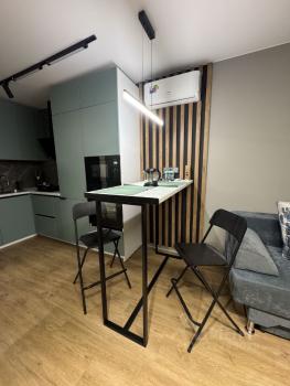 Квартира выполнена в дизайнерском стиле, что придаёт ей особый шарм и комфорт. Здесь есть всё необходимое для проживания: кондиционер, холодильник, посудомоечная машина, телевизор и стиральная машина. Ванная комната оборудована ванной, а окна выходят во двор, что обеспечивает тишину и спокойствие. В комнате и на кухне имеется вся необходимая мебель, поэтому можно сразу заехать и жить.