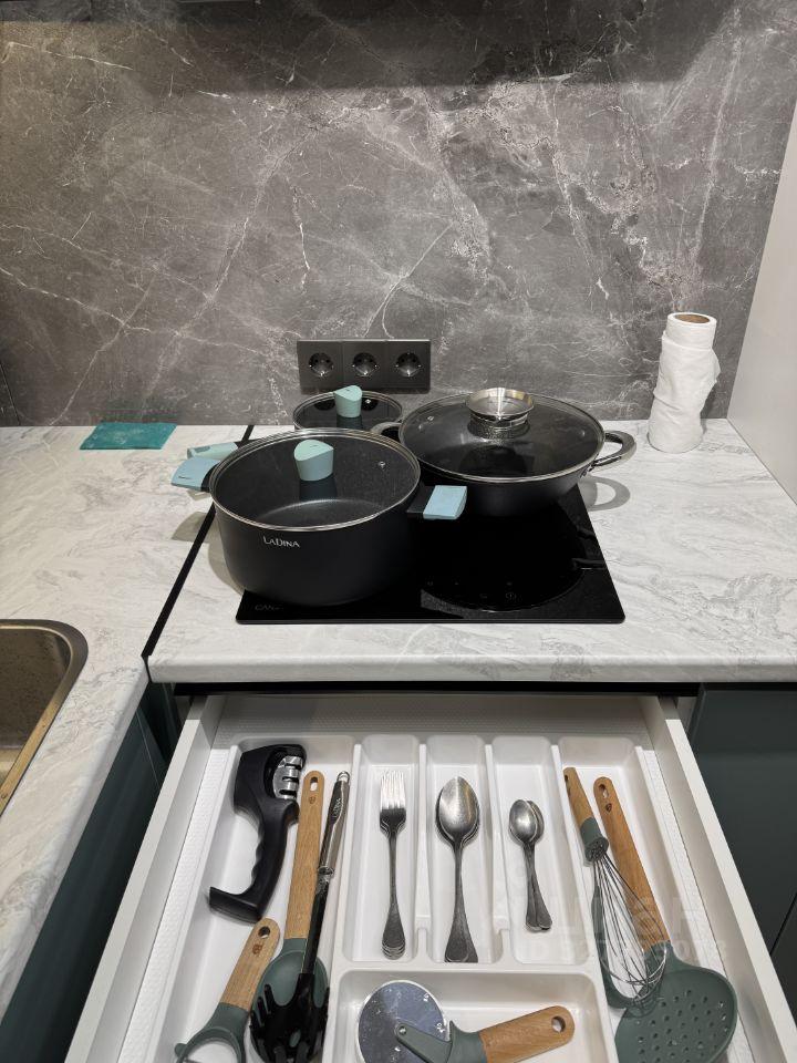 Квартира укомплектована всем необходимым для жизни. Если что то понадобится еще - обсудим .