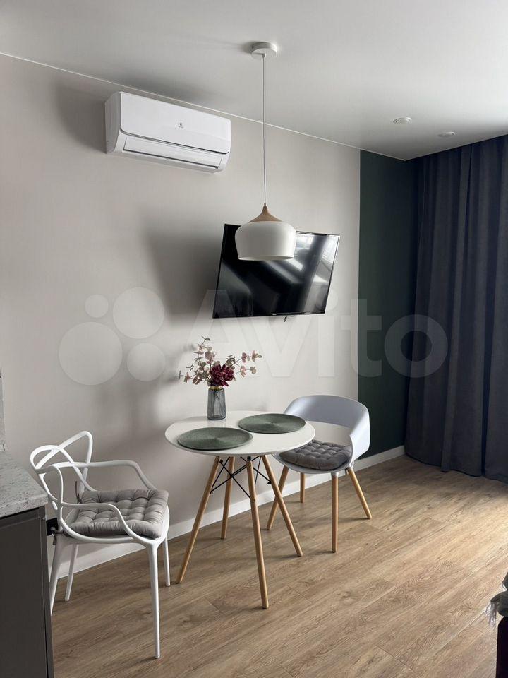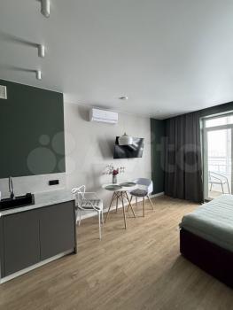 Квартира имеет косметический ремонт и полностью оборудована необходимой техникой для комфортного проживания: холодильник, телевизор и стиральная машина. Планировка студии рационально использует пространство, а окна выходят во двор, поэтому в квартире всегда тихо и спокойно. В ванной комнате установлена душевая кабина.