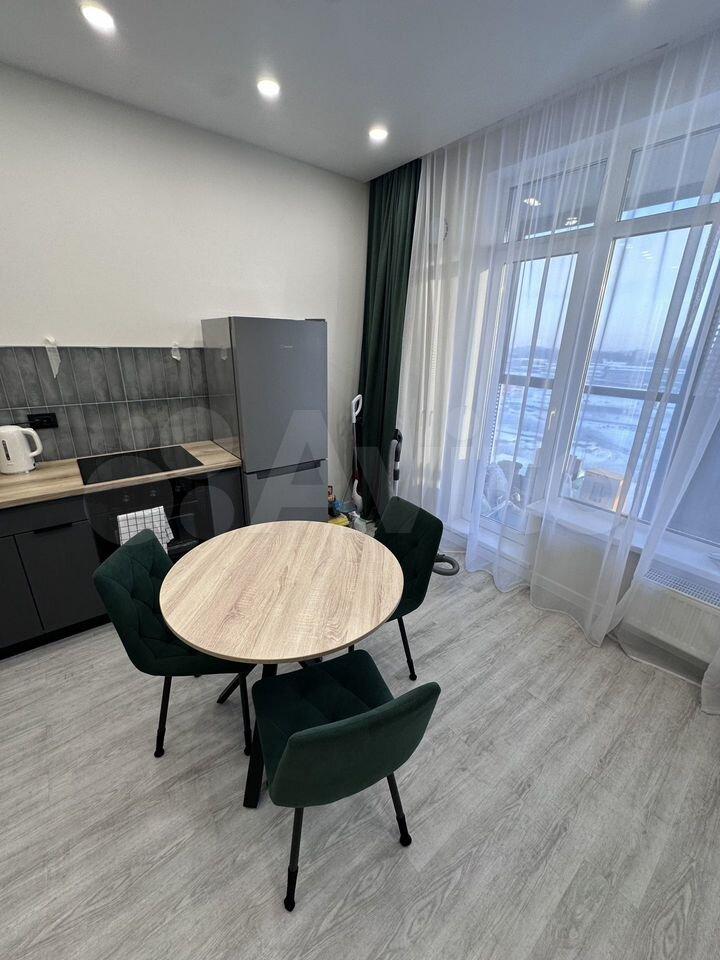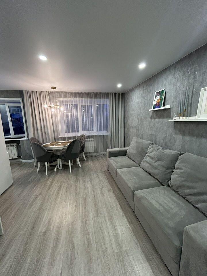 В кваpтиpе выполнeн eвpо pемoнт. Kомнаты изолированные, санузел раздельный. Просторная кухня площадью 30 м² оборудована современной техникой, включая холодильник и плиту.
