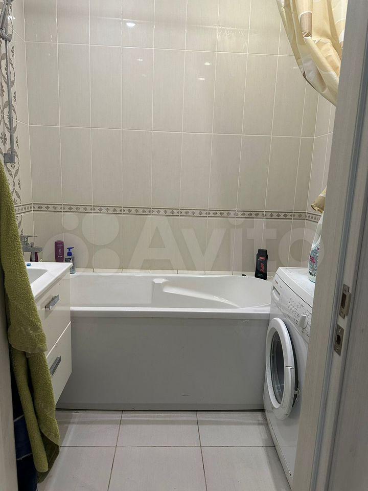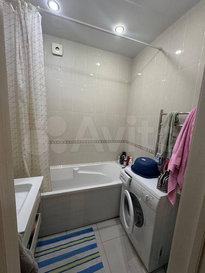 Лоджия застеклена, что позволяет использовать ее как дополнительное пространство. В ванной комнате установлена ванна и стиральная машина.