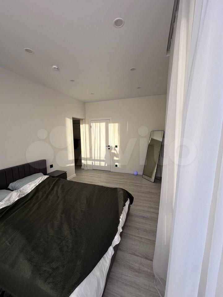 Квартира оборудована современной мебелью и техникой высокого качества: новый холодильник, духовой шкаф, варочная панель, микроволновую печь, электрический чайник, стиральную машину. Кухня-гостиная украшена удобным диваном, превращающимся в дополнительное спальное место, а главная спальня располагает приватным санузлом и собственной гардеробной комнатой.