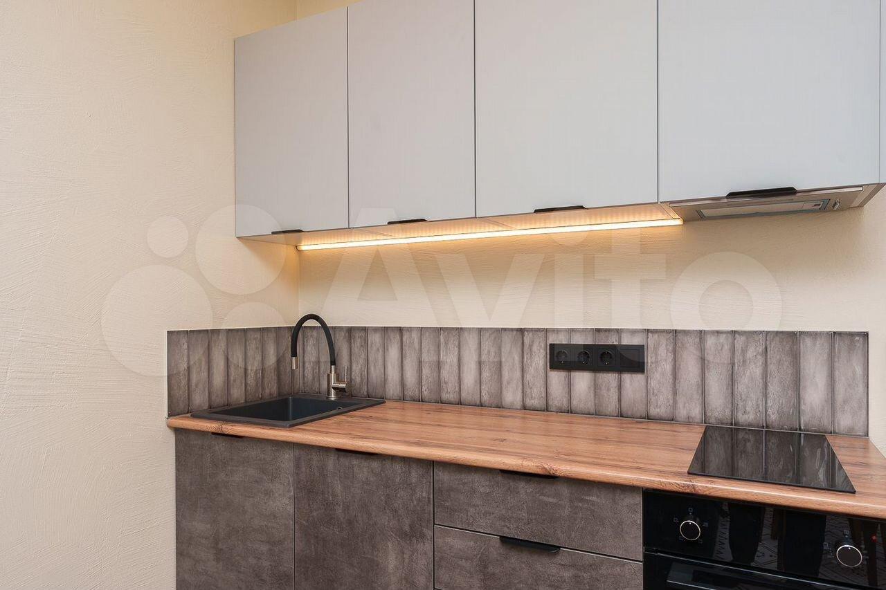 Общая площадь квартиры — 33 кв.м., жилая — 27 кв.м. Просторная кухня площадью 14 кв.м. оснащена всей необходимой техникой, включая холодильник и стиральную машину. В квартире выполнен свежий евро ремонт, что видно по современному дизайну и качественным материалам.