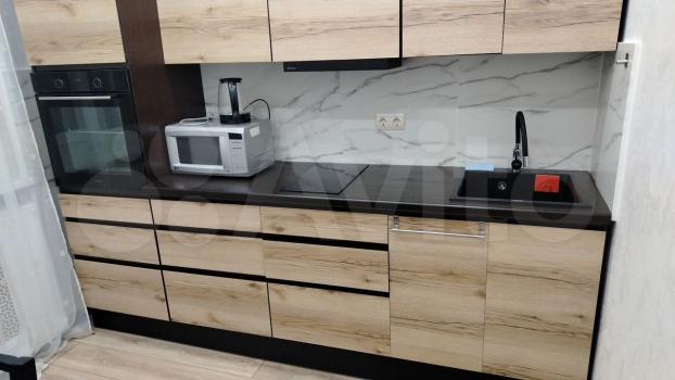 Квартира с евроремонтом и полностью готова к проживанию. Светлая и просторная жилая комната площадью 24 кв. м оборудована современной мебелью. Кухня в 14 кв. м также укомплектована всем необходимым: холодильник, микроволновка, духовка и стиральная машина. Из окон открывается панорамный вид как на улицу, а также имеется балкон, где можно насладиться свежим воздухом.