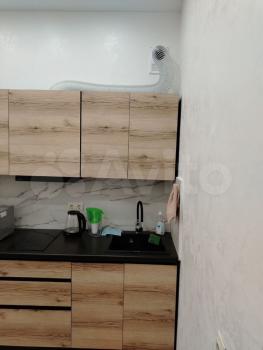 Квартира расположена на восьмом этаже 17-этажного дома по адресу: улица Железнодорожная, 15. Общая площадь — 26 кв. м, жилая — 17 кв. м, кухня — 5 кв. м. В квартире сделан евроремонт, она готова к заселению. Окна выходят на улицу.